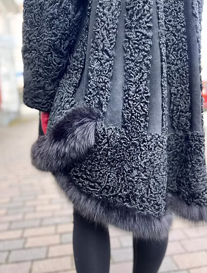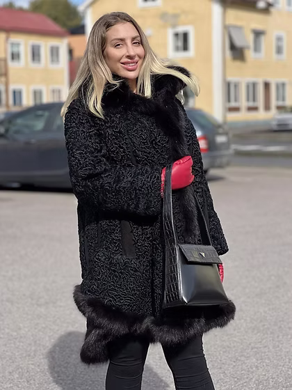 Vi presenterar en utsökt skapelse från vår kollektion – Swakara Kappan i Svart, tillverkad i en mycket speciell modell vår signatur swagger. Denna eleganta kappa sticker ut med sin sofistikerade design, kompletterad med ett band av minkpäls i nederkanten för en extra touch av förfining. Swakara-pälsen, som är känd för sin unika karaktär, bidrar till plaggets enastående skönhet. Kombinationen av swagger-modellen och den svarta färgen ger ett tidlöst och klassiskt utseende. Denna päls är omsorgsfullt utformad med uppmärksamhet på detaljer och lovar både lyx och praktiska egenskaper. De djupa fickorna, tillsammans med pälsen av högsta kvalitet, ger en funktionell och elegant lösning för kallare årstider.